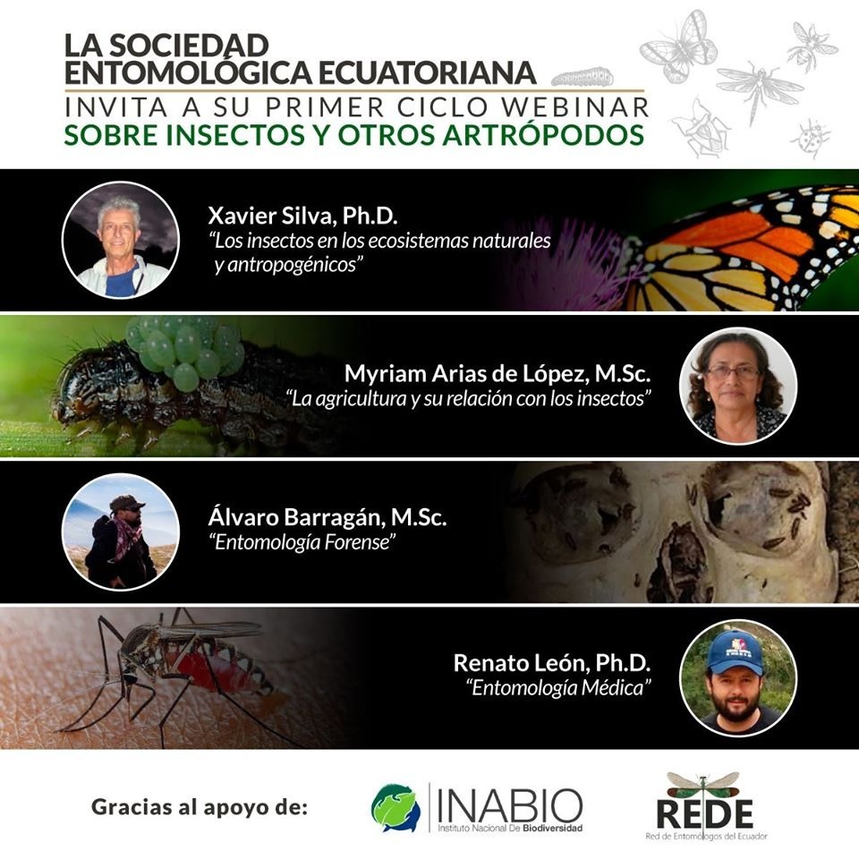 Desde la SOCIEDAD ENTOMOLOGICA ECUATORIANA (SEE), hemos recibido la invitación para participar en el primer Ciclo Webinar sobre Insectos y otros Artrópodos.
